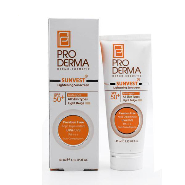 کرم ضد آفتاب و روشن کننده لک پوست بژ روشن SPF50 پرودرما 40 میل