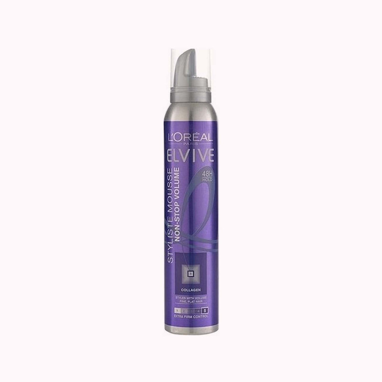موس مو لورآل سری ELVIVE مدل non stop volume حاوی کلاژ« محصولی حالت دهنده و تقیت کننده ساختار مو میباشد. این موس مو با درجه نگهدارندگی 5 از 5 بخوبی حالت موها را حفظ کرده و باعث حجیم تر شدن موها میشود.