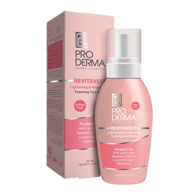 فوم شستشوی روشن کننده پرودرما فاقد سولفات، پارابن و مواد صابونی بوده و برای پاک کردن مواد آرایشی، چربی و آلودگی های انواع پوست مناسب می باشد. این فوم شستشو صورت حاوی ویتامین سی، عصاره لیکوریس و بیربری است که پوست را روشن و شفاف کرده و لک های تیره و قهوه ای پوست را رفع می کند. همچنین، لاکتیک اسید موجود در آن، ضمن آبرسانی پوست از بروز جوش و آکنه روی پوست جلوگیری می کند.