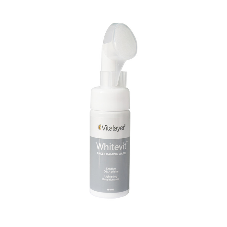فوم شستشوی صورت ویتالیر مدل وایت ویت حاوی ویتامین C و ترکیبات بسیار موثر در پیشگیری از ایجاد لک و ایجاد شفافیت در پوست است. نحوه عملکرد پمپ و برس نرم سیلیکونی از ویژگیهای خاص این محصول شمرده میشود که علاوه بر پاکسازی عمیق منافذ پوست از الودگی، با ماساژ پوست و بالا بردن جریان خون نیز میتواند فرآیند شفاف سازی را بهبود بخشد. این فوم فاقد پارابن، مواد صابونی و هر گونه مواد حساسیت زا است.