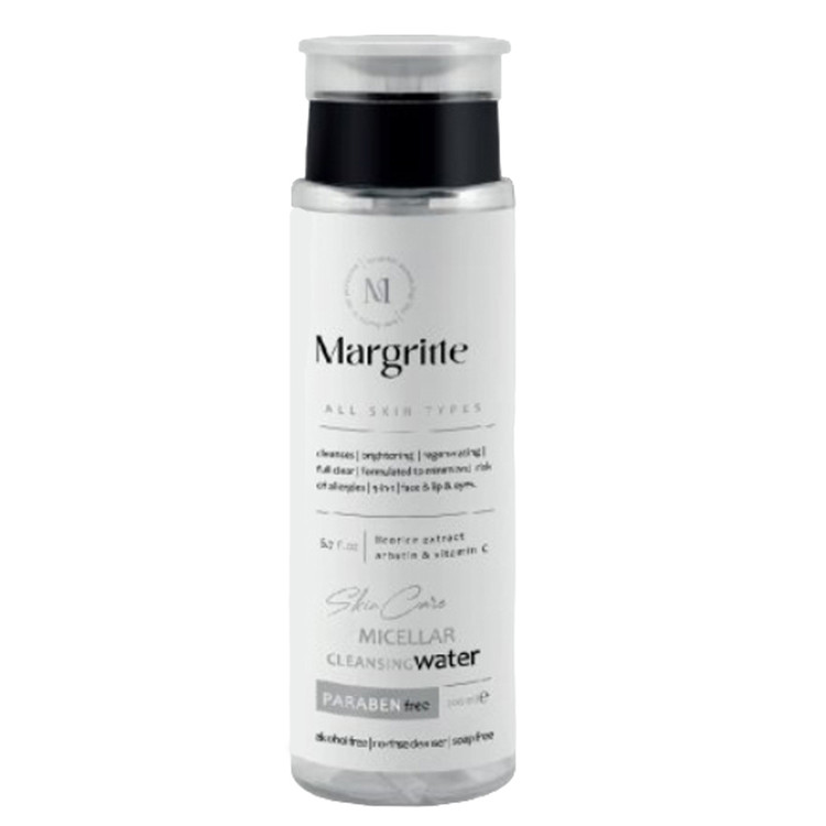 میسلارواتر یک پاک کننده صورت است که به حذف چربی اضافی و آلودگی ها از روی پوست شما کمک می کند و باعث می شود پوستی نرم و زیبا داشته باشید. میسلار واتر 3 در 1 روشن کننده انواع پوست مارگریت، پاک کننده مواد آرایشی، گرد و غبار و آلودگی از سطح پوست میباشد. احیا کننده و التیام بخش پوست است و افراد با انواع پوست ها میتوانند از آن استفاده کنند. استفاده از این محصول حساسیتی برای پوست ایجاد نمیکند و فاقد پارابن، مواد صابونی، الکل و سولفات است. پس از استفاه از این محصول نیازی به شستشوی صورت نمیباشد.