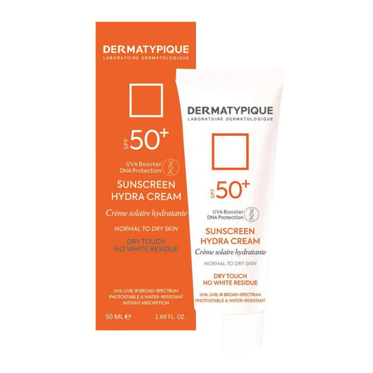 کرم ضد آفتاب بی رنگ درماتیپیک +SPF50 مدل هیدرا مناسب پوست نرمال تا خشک حجم 50 میلی لیتر